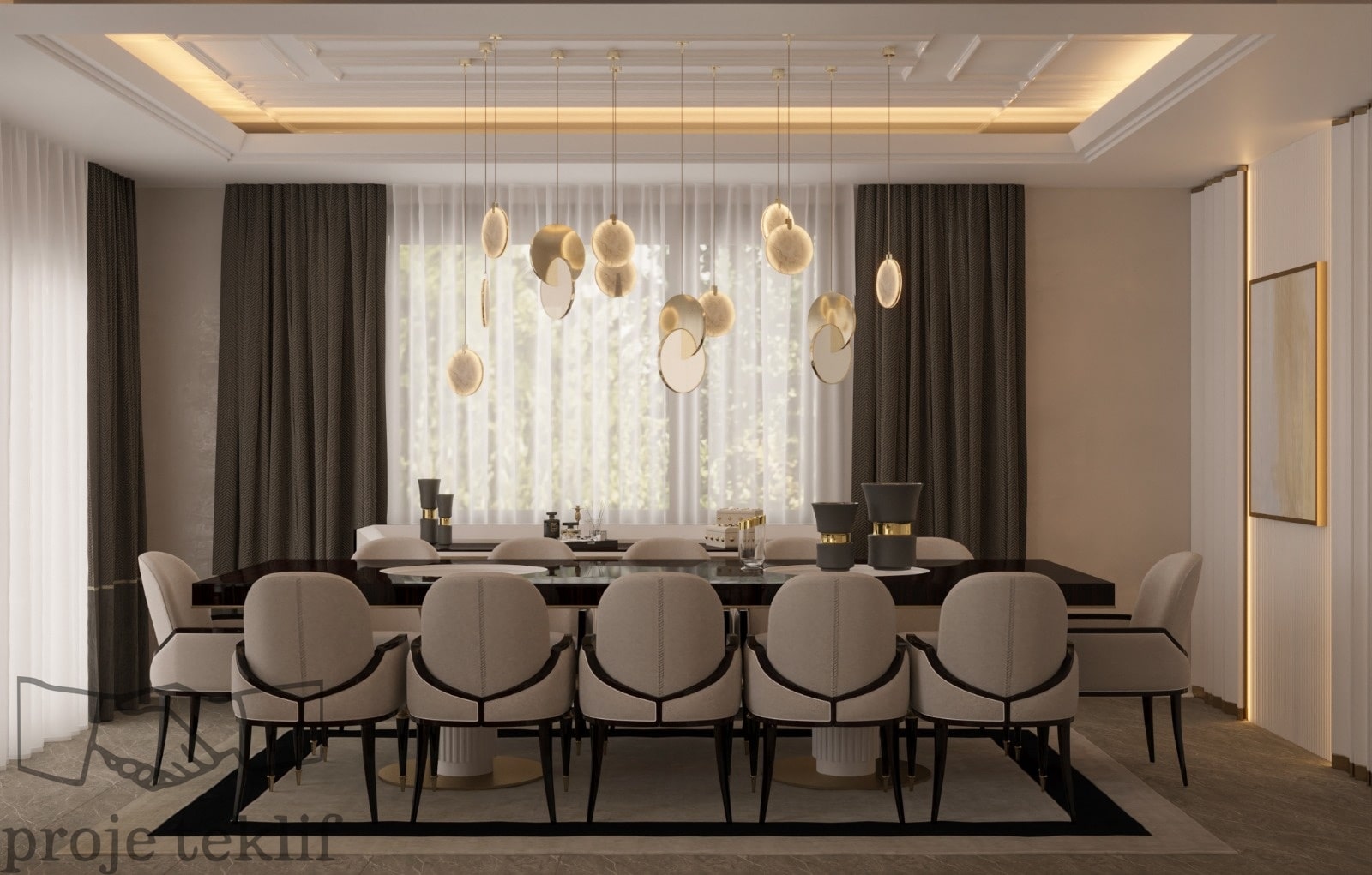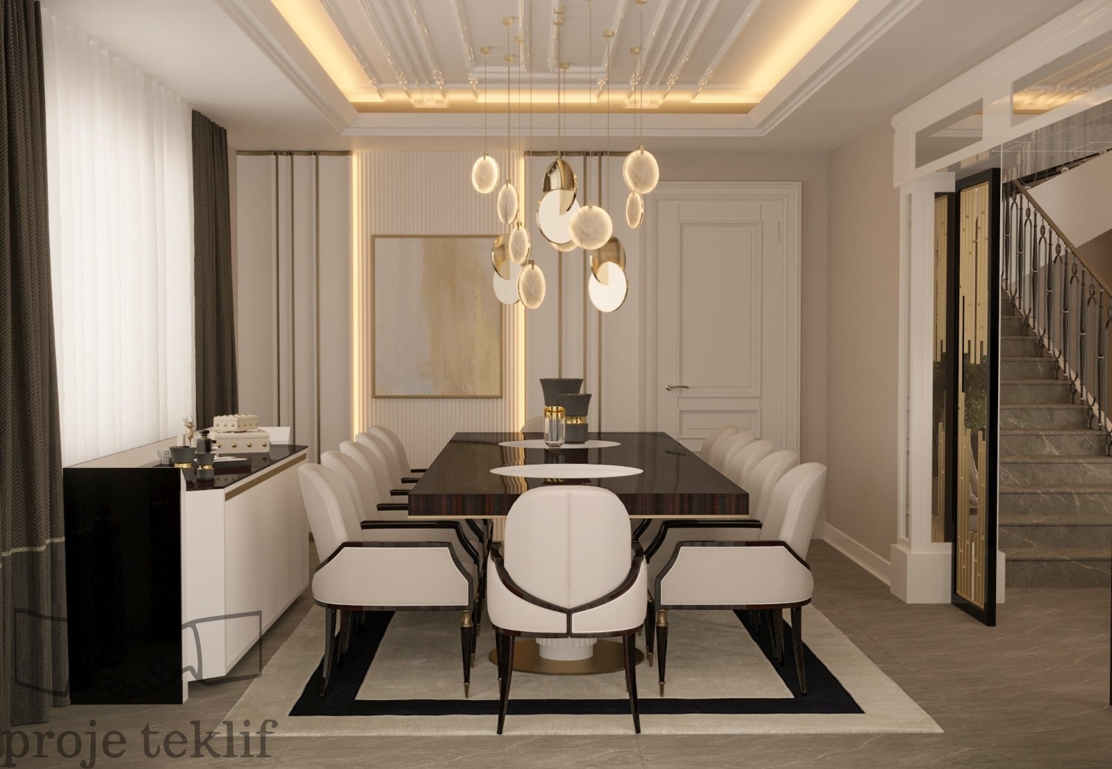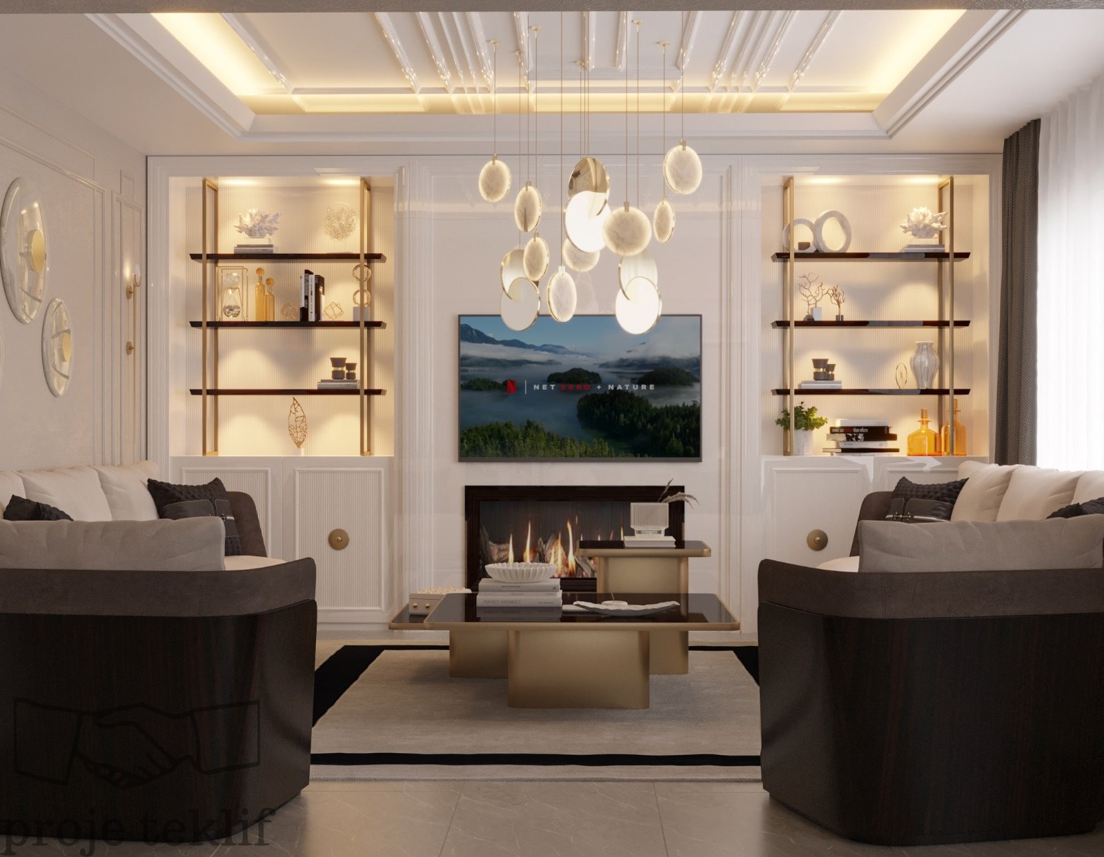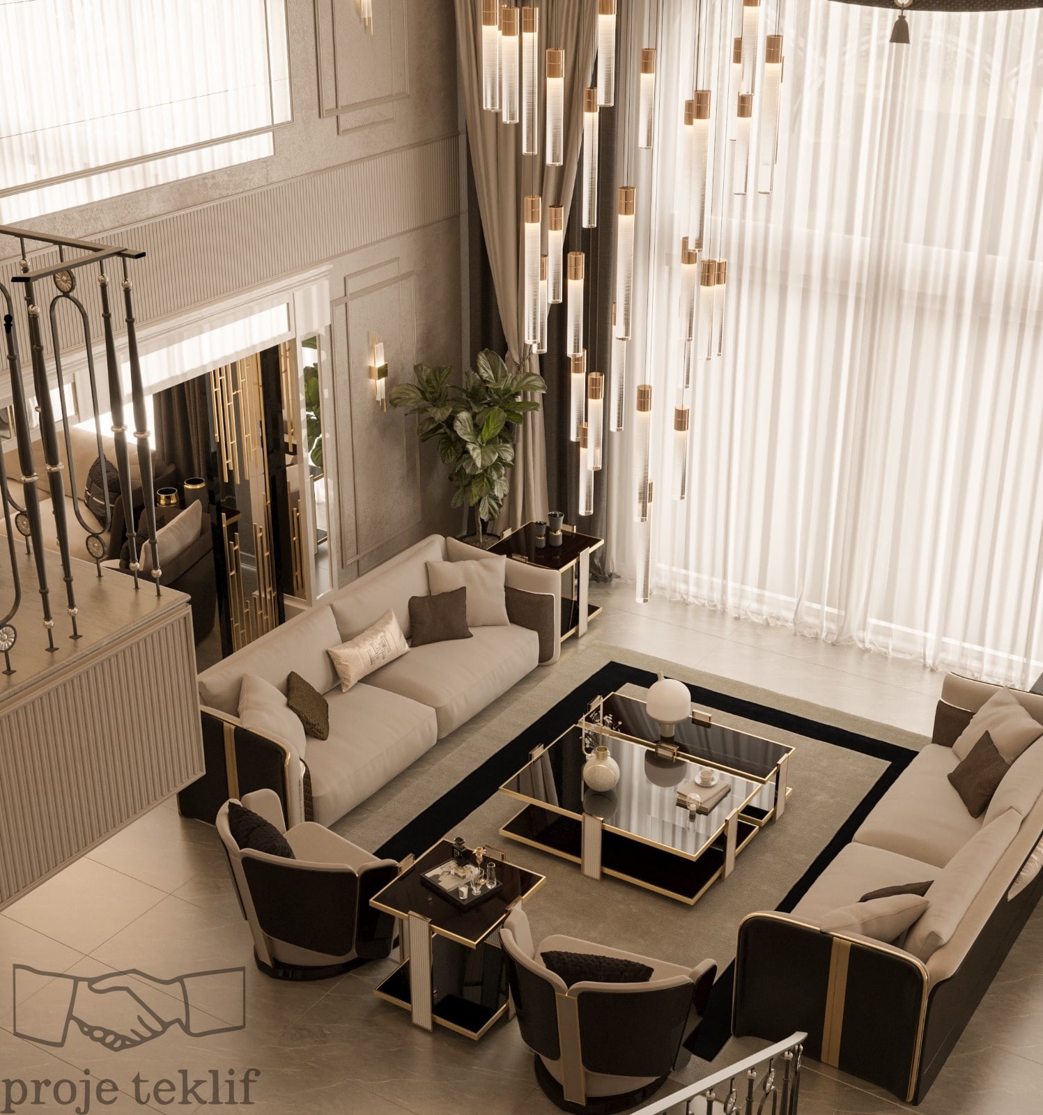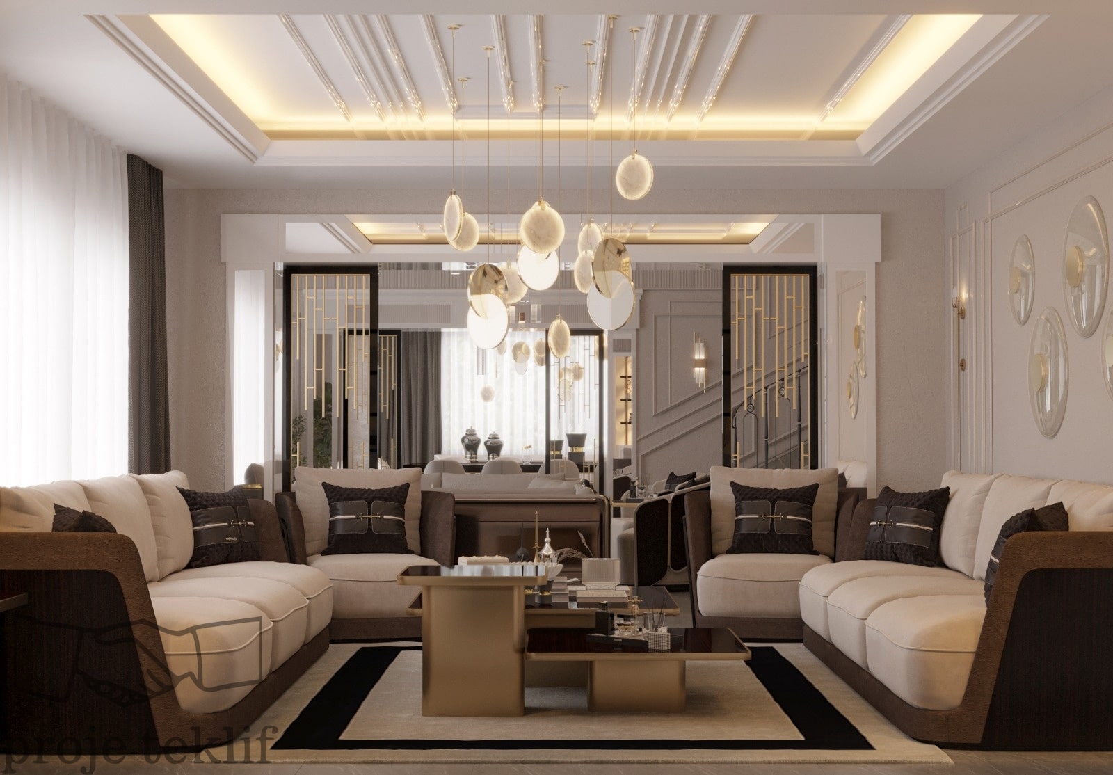 Bu projemiz, geniş ve ferah yaşam alanlarına sahip villalarda hem şıklığı hem de doğayla uyumu ön plana çıkaracak şekilde tasarlanmıştır. İç mekânlarda kullanılan doğal dokular, açık renk paletleri ve zarif mobilyalar sayesinde mekanlarda lüks bir sadelik yakalanmıştır. Geniş pencerelerle desteklenen doğal aydınlatma ve mekanlar arası akışkanlık, ferah ve davetkâr bir atmosfer oluşturmuştur.
