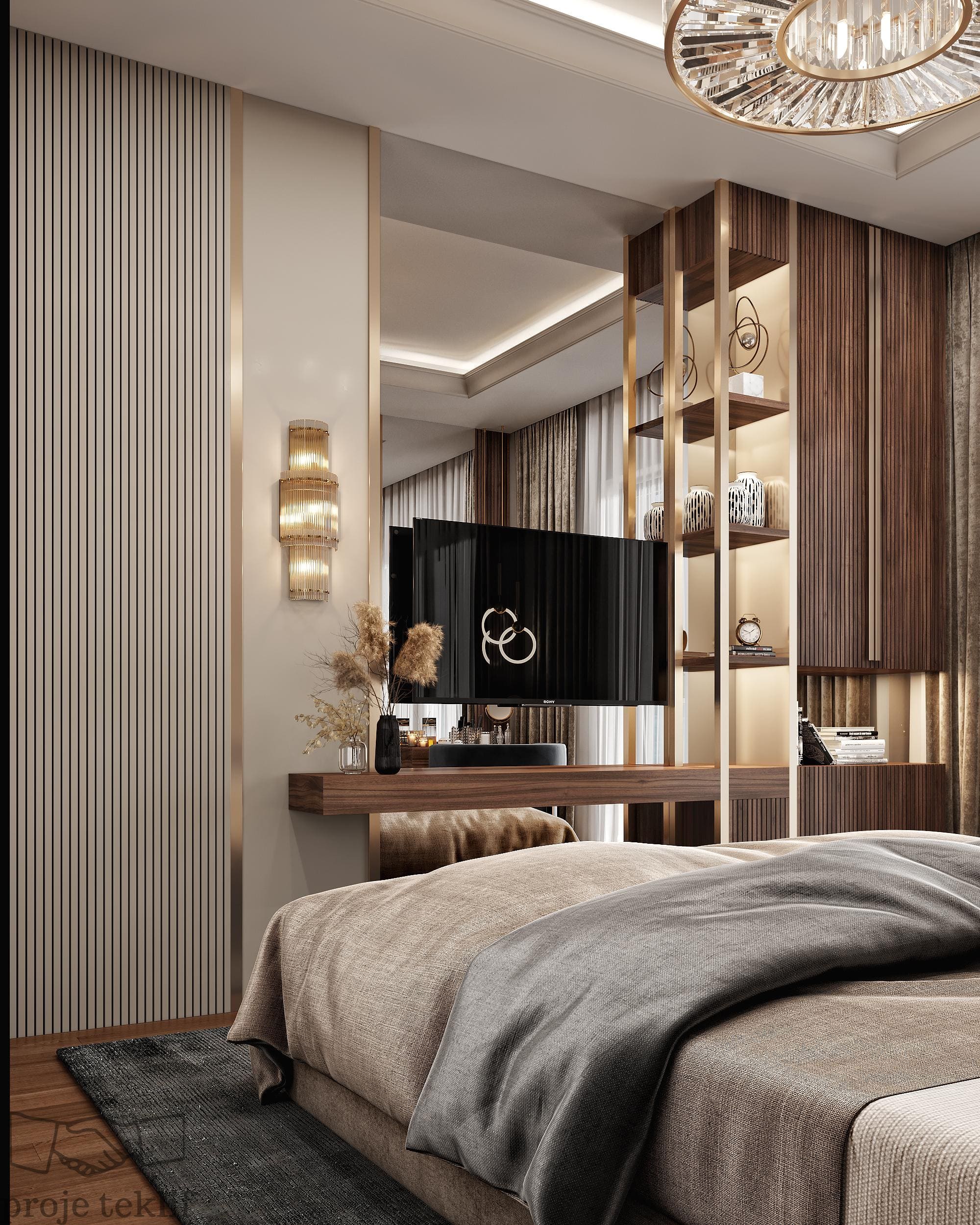 Bu projemiz, geniş ve ferah yaşam alanlarına sahip villalarda hem şıklığı hem de doğayla uyumu ön plana çıkaracak şekilde tasarlanmıştır. İç mekânlarda kullanılan doğal dokular, açık renk paletleri ve zarif mobilyalar sayesinde mekanlarda lüks bir sadelik yakalanmıştır. Geniş pencerelerle desteklenen doğal aydınlatma ve mekanlar arası akışkanlık, ferah ve davetkâr bir atmosfer oluşturmuştur.